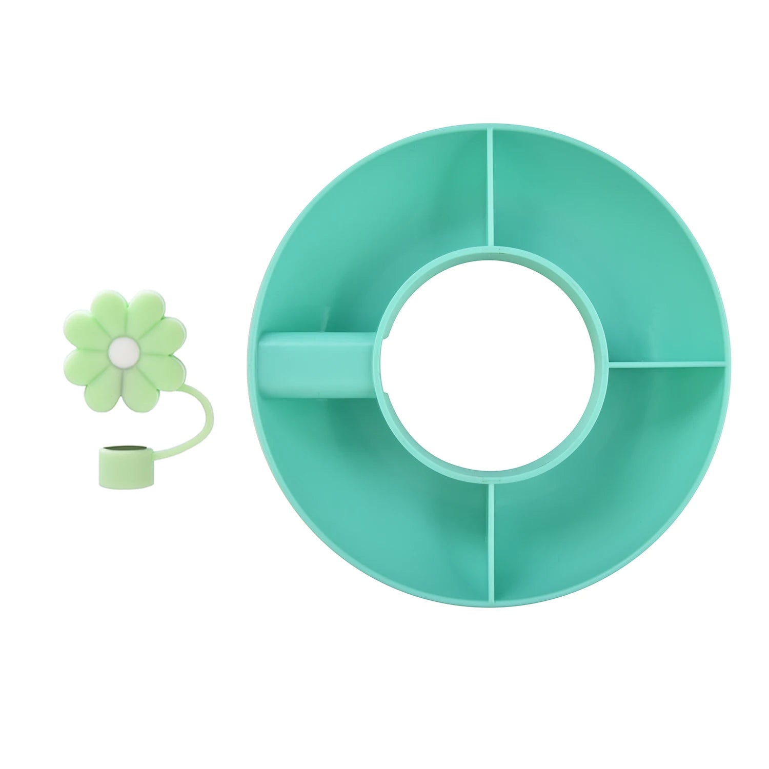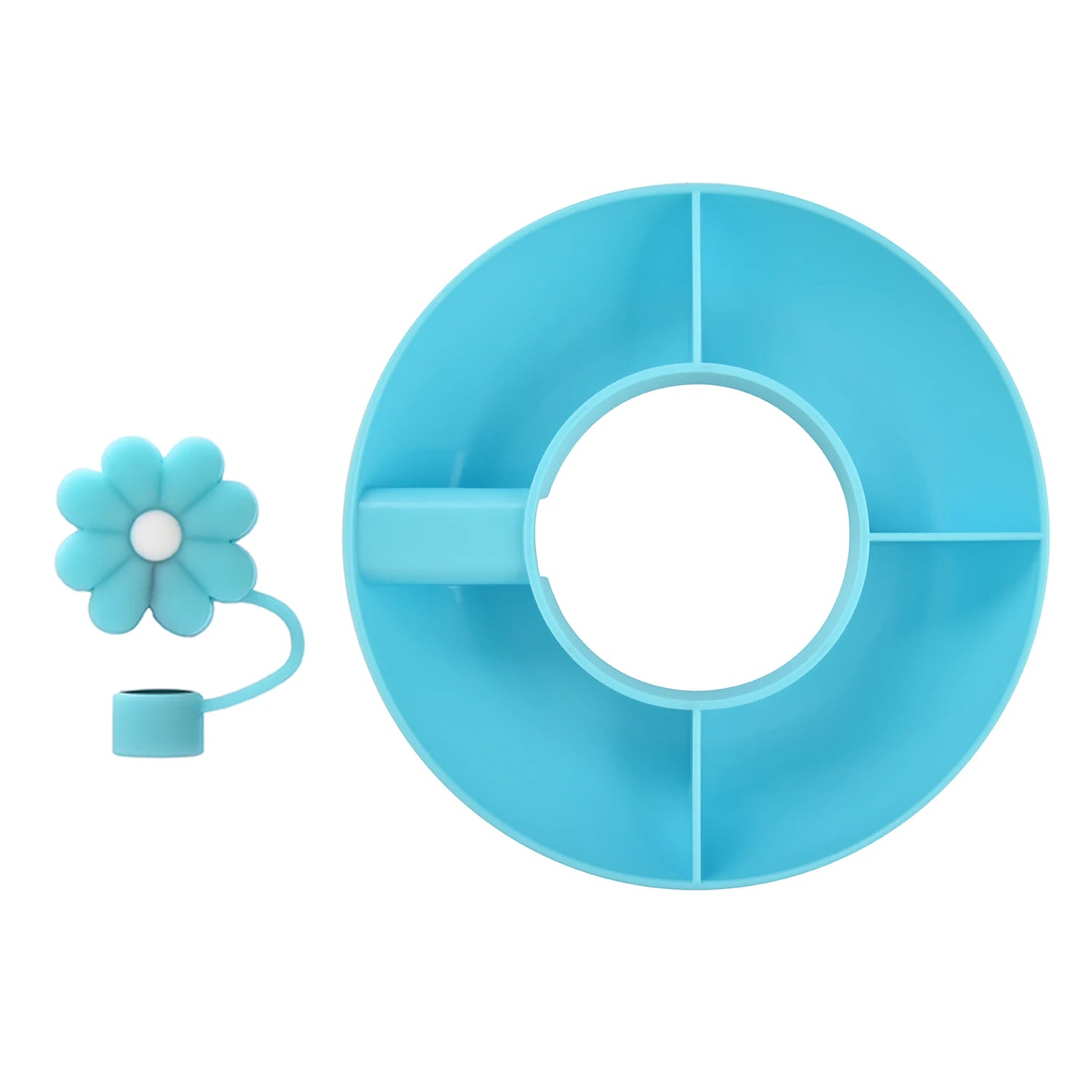 Crafted from durable food-grade silicone, this bowl is not only easy to clean but also dishwasher safe. With its vibrant colors and cute flower-shaped straw caps, it adds a playful touch to your snacking experience. The four spacious compartments allow you to organize snacks and keep everything fresh and tasty.
