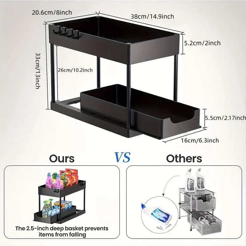 Double Tier Sliding Under Sink Organizer Rack